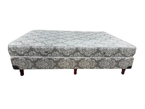 Conjunto SOMMIER GIZA. Colchón de Espuma. Medidas 140×190. Altura del colchón 18cm con base de 20cm y patas de madera. Dual Rotacion. Soporta 70kg por lado.