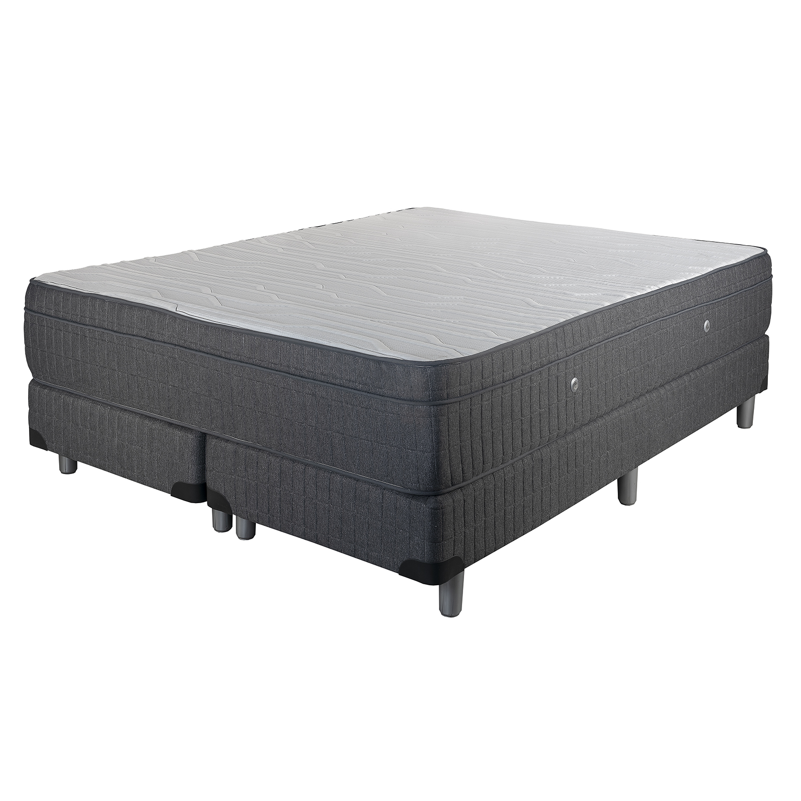 Conjunto Sommier Pisa TOPE DE GAMA. Con espuma de Alta Densidad y LATEX. Altura del colchón 30cm. Con bases de 20 cm de altura. Tejido 3d importado. Medida 160×190. Dos Plazas y media.